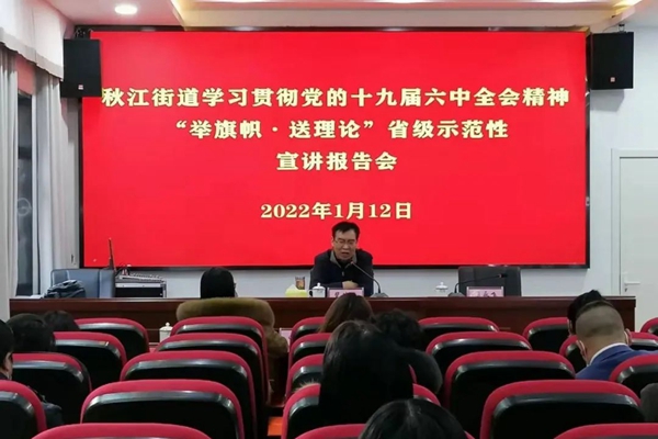 1月12日,學(xué)習(xí)貫徹黨的十九屆六中全會(huì)精神“舉旗幟·送理論”省級(jí)示范性宣講報(bào)告會(huì)在秋江街道舉行。