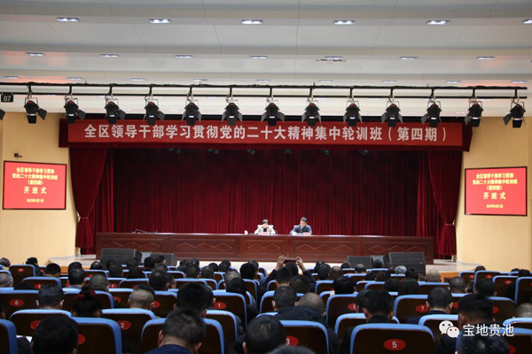 3月1日,貴池區領導干部學習貫徹黨的二十大精神集中輪訓班(第四期)在區委黨校正式開班。區委常委、副區長汪賽榮出席開班式并作動員講話。