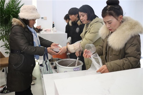 活動當天,外面天氣雖寒,但社區(qū)黨群服務(wù)中心內(nèi)卻暖意融融。一碗碗熱氣騰騰、香甜可口的臘八粥在社區(qū)工作人員的精心準備下,被逐一遞送到前來參加活動的居民手中。為確保食材安全、口味地道,工作人員早在前一天就提前準備好食材,并將食材中難以煮熟的紅豆、蓮子、花生米等提前浸泡,第二天一早便用小火耐心熬制好,“我們希望大家在品嘗到臘八粥時,不僅暖胃,更能暖心?!毖亟鐓^(qū)黨委副書記吳彥婧說道。