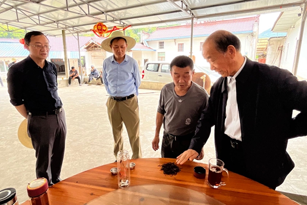 揭牌儀式結(jié)束后,全體人員集中乘車,前往梅村鎮(zhèn)新村社區(qū)開展首場(chǎng)助力鄉(xiāng)村振興志愿服務(wù)活動(dòng),活動(dòng)還邀請(qǐng)了市銀發(fā)人才工作室主任、高級(jí)農(nóng)藝師、茶葉老專家江平參加。在深渡口農(nóng)場(chǎng)茶葉制作現(xiàn)場(chǎng),江老圍繞紅茶的制作工序和如何提升紅茶品質(zhì)等提出了很好的建議,并且對(duì)紅茶成品進(jìn)行了詳細(xì)點(diǎn)評(píng)。點(diǎn)評(píng)結(jié)束,大家來到茶園現(xiàn)場(chǎng),區(qū)農(nóng)技中心茶葉站站長(zhǎng)雷元?jiǎng)倬筒铇涫┓使芾怼⑿拗φ蔚龋c茶農(nóng)進(jìn)行面對(duì)面、手把手指導(dǎo)。茶農(nóng)表示十分感謝:“專家們幫我解答了茶葉生產(chǎn)和茶園管理方面的諸多疑惑,讓我受益匪淺。”