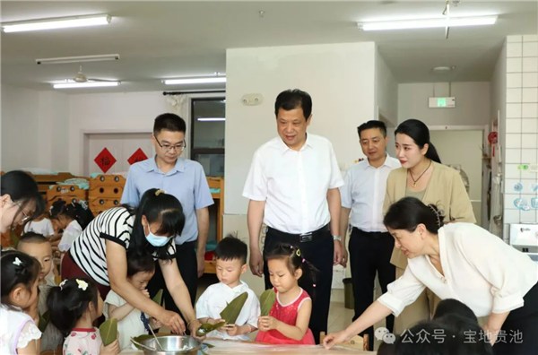 當天,洋浦幼兒園內充滿歡聲笑語,孩子們在老師的帶領下正在進行包粽子、制作艾草花環等端午節特色活動。錢松一行走進園內各功能區,詳細了解學校教育教學、師資配備、食堂管理等方面情況,并和孩子們親切互動,衷心祝愿他們節日快樂、健康成長。