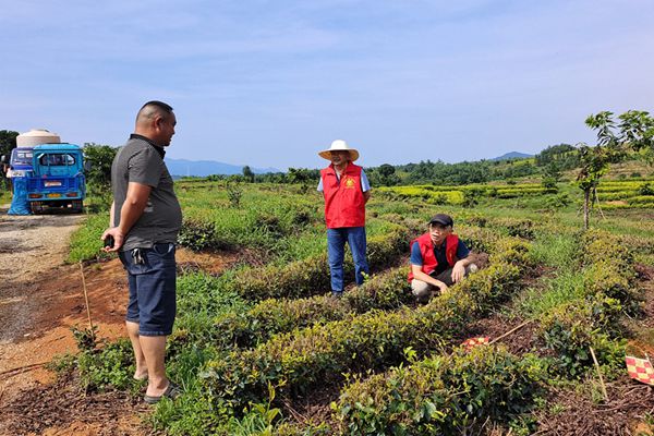 工作室成員施文與雷元勝深入茶山村茶園,實地查看茶樹的生長狀況。他們穿梭在茶樹間,仔細觀察茶葉的葉片、芽頭,檢查病蟲害情況,并與茶農們進行交流,詳細了解茶園的日常管理和面臨的問題。針對當前茶葉種植中存在的施肥、修剪、病蟲害防治等技術難題,老專家們憑借豐富的經驗和專業知識,進行現場指導,手把手教茶農如何科學管理茶園。